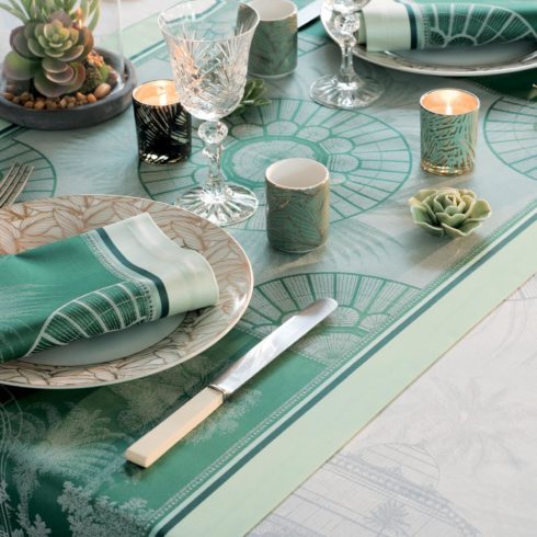 Des nappes décoratives haut de gamme: GARNIER-THIEBAUT tisse depuis 1833 les plus beaux jacquard ou damassés au cœur des Vosges, avec une créativité sans faille, une parfaite maîtrise des couleurs, un toucher incomparable et une qualité irréprochable. Ces modèles de nappes sont réalisés selon la technique du jacquard qui permet de voir les motifs à l’endroit comme à l’envers et de combiner une multitude de couleurs avec une brillance délicate.